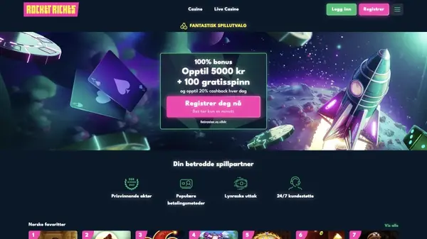 Spill smartere i Norge med RocketRiches: tydelige bonuser, stort spillutvalg, enkel bank