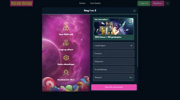 For Ä bli med hos RocketRiches Casino, klikk pÄ registreringsknappen pÄ hjemmesiden og fÞlg registreringsskjemaet. RocketRiches ber om standardopplysninger som trengs for Ä opprette og sikre en konto, som e-post, passord og grunnleggende personinformasjon. Etter at du sender inn skjemaet, kan du bli bedt om Ä bekrefte e-posten din eller fullfÞre en rask sjekk fÞr du kan sette inn.